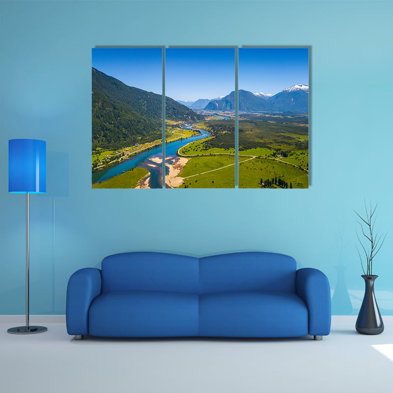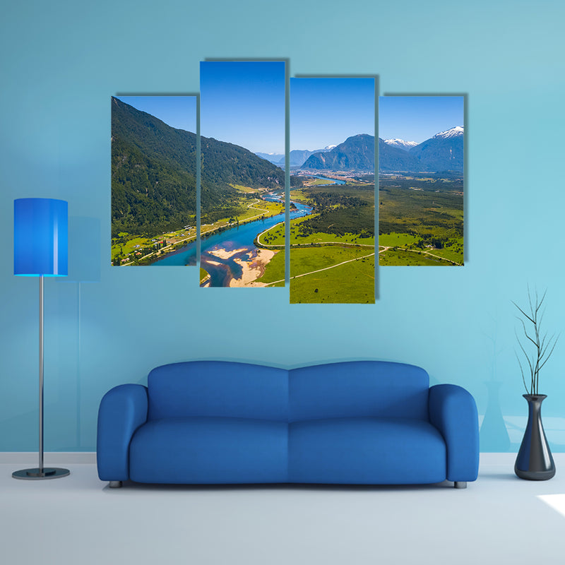 Aerial view of the green valley with river and mountains town of Puerto Aysen, Chile Multi panel canvas wall art