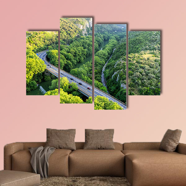 Aerial view of the bridge and the road over the river Pinios multi panel canvas wall art