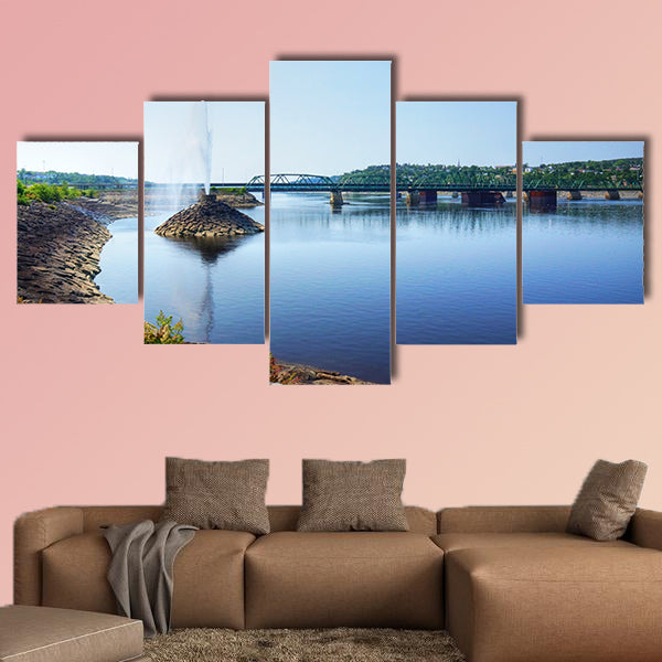 This large print indicates the amazing landscaping of Canada. The backdrop of this print is giving the amazing view of waterfalls in the river. In this print you can see the wonderful water fountain in a river by a bridge and public park also. This print is better for your home and office décor and you can easily get this cheap canvas wall art set.