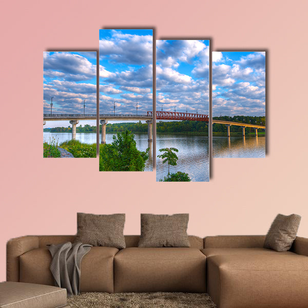 As the name of this large canvas print indicates, this is the view of the early morning Twin Rivers pedestrian bridge with puffy white clouds over the Arkansas River. The beauty of this print is beyond the description of the words because this elegance cannot be compiled in few words. There are clouds that have been reflected in the waters of the Twin Rivers. This cheap canvas print has been designed by the clarnia store.