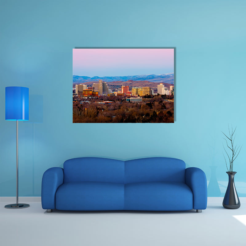 The Reno, known as The Biggest Little City in the World, is famous for its casinos, and is the birthplace of the Gaming Corporation Harrah's Entertainment has been presented in this cheap canvas print by the clarnia store, Reno, known as The Biggest Little City in the World, multi panel canvas wall art. The whole environment in this print is clear and the city is giving a very crowdie look of its outer areas. The city that you can see in this canvas print is the biggest little city in the world.