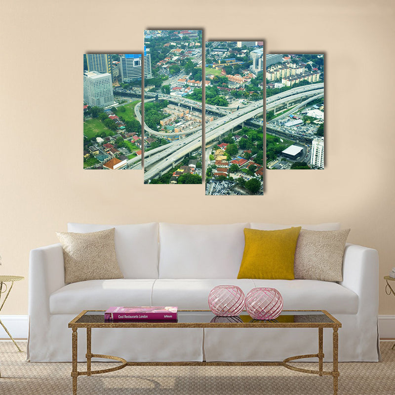 The Aeial view of Kuala Lumpur. Malaysia multi panel canvas wall art which city has been presented in this large canvas print. Aeial view of Kuala Lumpur. Malaysia canvas wall art cheap canvas print can be used for home and office décor as well. This cheap canvas print has been designed by the Clarnia store that is a canvas making store. The bridge is clear and strong crossing the mountains.