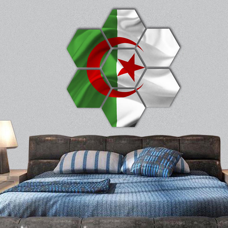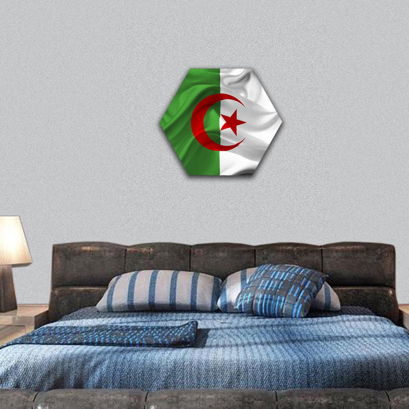 Clarnia is a concept store and your one stop solution for adding class to the interiors. Here you go with the most surreal Algeria waving flag hexagonal canvas wall art collection. We specialize in Algeria flag with perfect animation of designs and colors with bold strokes and hues. Every tint is going to melt your heart. Our paneled wall art collection is here to get you bundle of compliments.