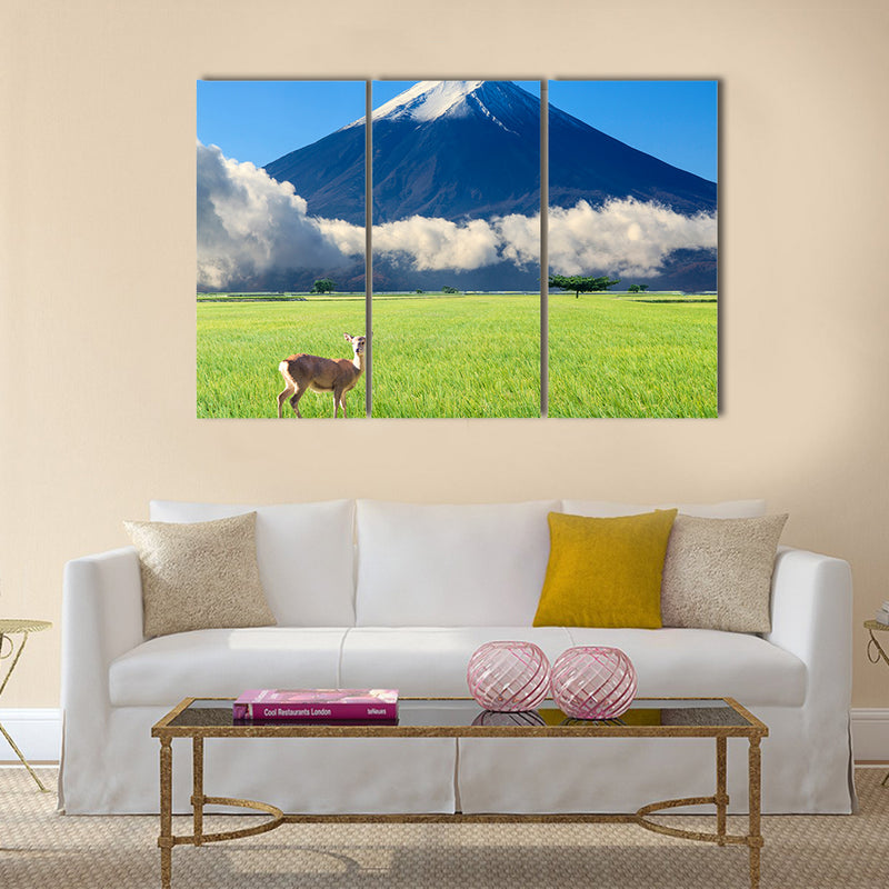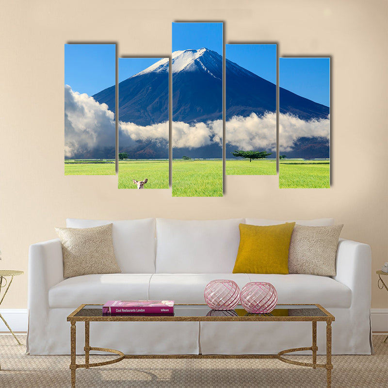 This is the beautiful landscape with nice nature color multi panel canvas wall art This canvas print is made by the Clarnia so that the outstanding beauty of beautiful landscape with nice nature color canvas wall art can be used for your office or home décor. The mountains behind the young mountains are white and covered by the snow, while the small mountains are green and covered by the grass.