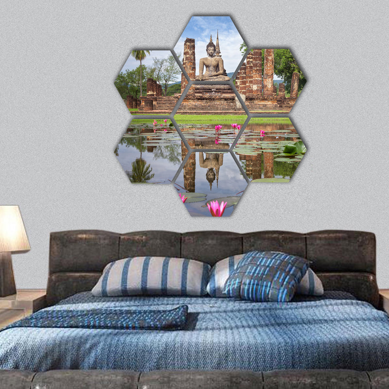 Clarnia is a concept store and your one stop solution for adding class to the interiors. Here you go with the most surreal Buddha Statue at Wat Mahathat in Sukhothai Historical Park, hexagonal canvas wall art collection. We specialize Buddha Statue hexagonal Canvas wall art with perfect animations of designs and colors with bold strokes and hues. Every tint is going to melt your heart. Our paneled wall art collection is here to get you bundle of compliments.