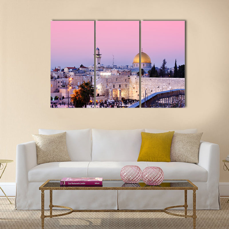 This is the beauty of the Front view of Dome of the Rock and Western Wall in Jerusalem, Israel multi panel canvas wall art The Dome of the Rock and Western Wall in Jerusalem, Israel canvas wall art are amazing. This cheap and versatile canvas print can be used for home and office décor as well. This cheap canvas print has been designed by the Clarnia store that is a canvas making store.