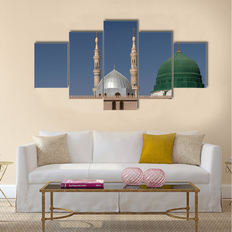 This is the Exterior view of minarets and green dome of a mosque, multi panel canvas wall art The Exterior view of minarets and green dome of a mosque canvas wall art are amazing. This cheap and versatile canvas print can be used for home and office décor as well. This cheap canvas print has been designed by the Clarnia store that is a canvas making store.