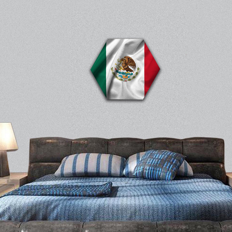 Clarnia is a concept store and your one stop solution for adding class to the interiors. Here you go with the most surreal flag of Mexico with satin fabric texture hexagonal canvas wall art collection. We specialize in flag of Mexico hexagonal Canvas wall art with perfect animations of designs and colors with bold strokes and hues. Every tint is going to melt your heart. Our paneled wall art collection is here to get you bundle of compliments.