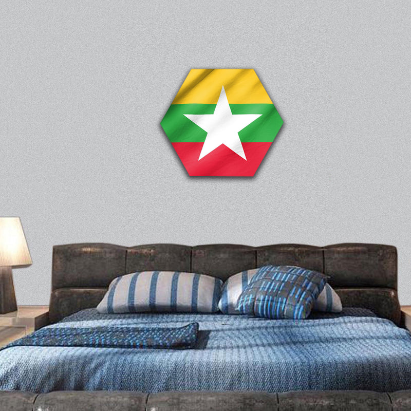 Clarnia is a concept store and your one stop solution for adding class to the interiors. Here you go with the most surreal Flag of Myanmar hexagonal canvas wall art collection. We specialize Flag of Myanmar with perfect animation of designs and colors with bold strokes and hues. Every tint is going to melt your heart. Our paneled wall art collection is here to get you bundle of compliments.