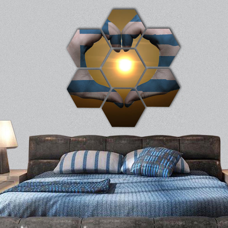 Clarnia is a concept store and your one stop solution for adding class to the interiors. Here you go with the most surreal Gesture make by Greece flag hexagonal canvas wall art collection. We specialize in Greece flag hexagonal Canvas wall art with perfect animations of designs and colors with bold strokes and hues. Every tint is going to melt your heart. Our paneled wall art collection is here to get you bundle of compliments.