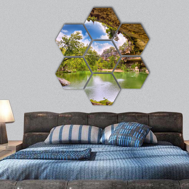 Clarnia is a concept store and your one stop solution for adding class to the interiors. Here you go with the most surreal Hamilton Pool sink hole, Texas, United States  hexagonal canvas wall art collection. We specialize in Hamilton Pool sink hole with perfect animation of designs and colors with bold strokes and hues. Every tint is going to melt your heart. Our paneled wall art collection is here to get you bundle of compliments.