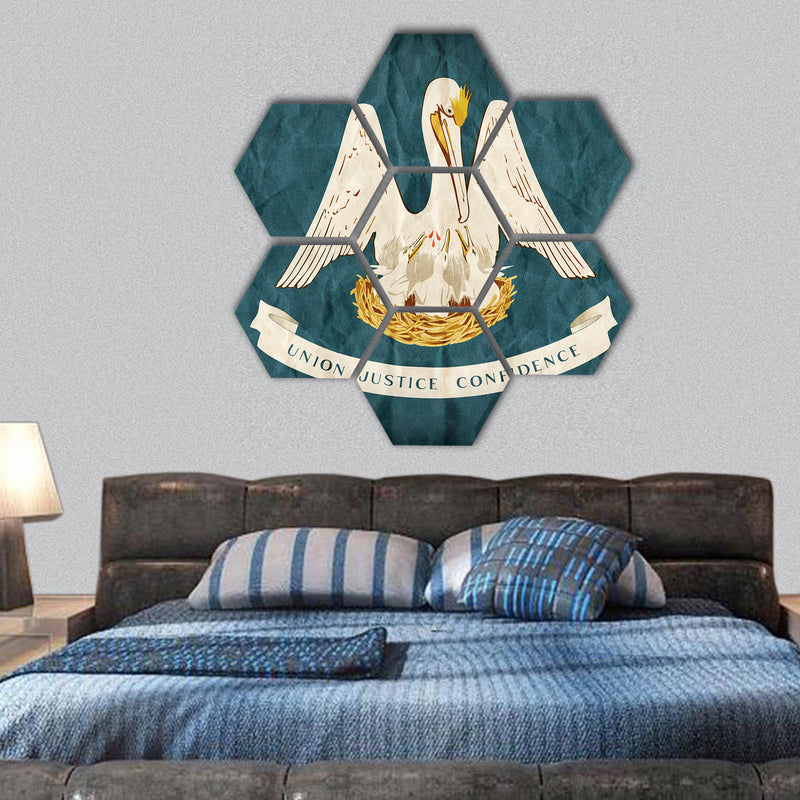 Clarnia is a concept store and your one stop solution for adding class to the interiors. Here you go with the most surreal Louisiana flag on paper texture hexagonal canvas wall art collection. We specialize Louisiana flag hexagonal canvas wall art making the perfect amalgamation of designs and colors with bold strokes and hues. Every tint is going to melt your heart. Our paneled wall art collection is here to get you bundle of compliments.