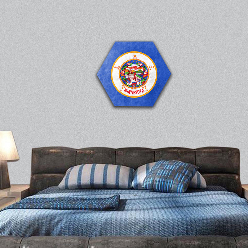 Clarnia is a concept store and your one stop solution for adding class to the interiors. Here you go with the most surreal Minnesota State Flag painted on leather texture hexagonal canvas wall art collection. We specialize in Minnesota State Flag with perfect animation of designs and colors with bold strokes and hues. Every tint is going to melt your heart. Our paneled wall art collection is here to get you bundle of compliments.