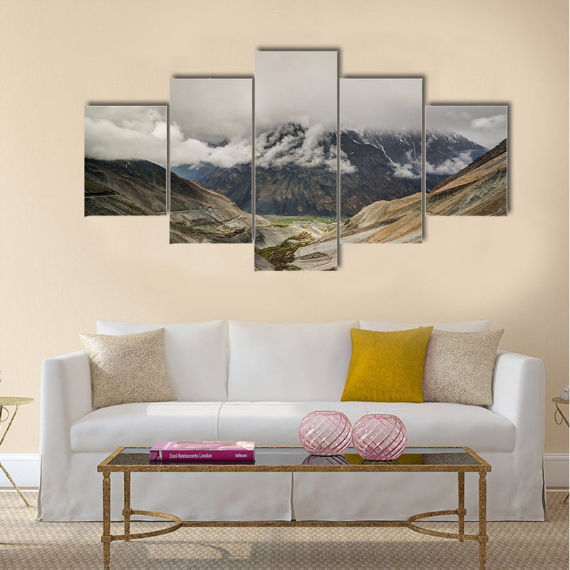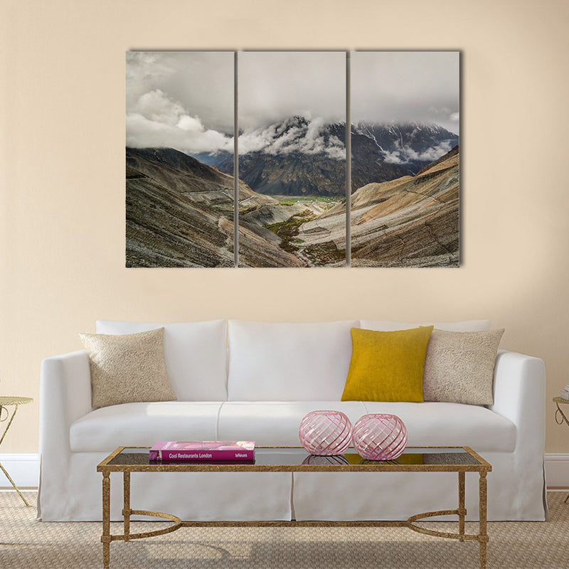 Panorama of Mastuj river and valley near Shandur pass Pakistan multi panel canvas wall art