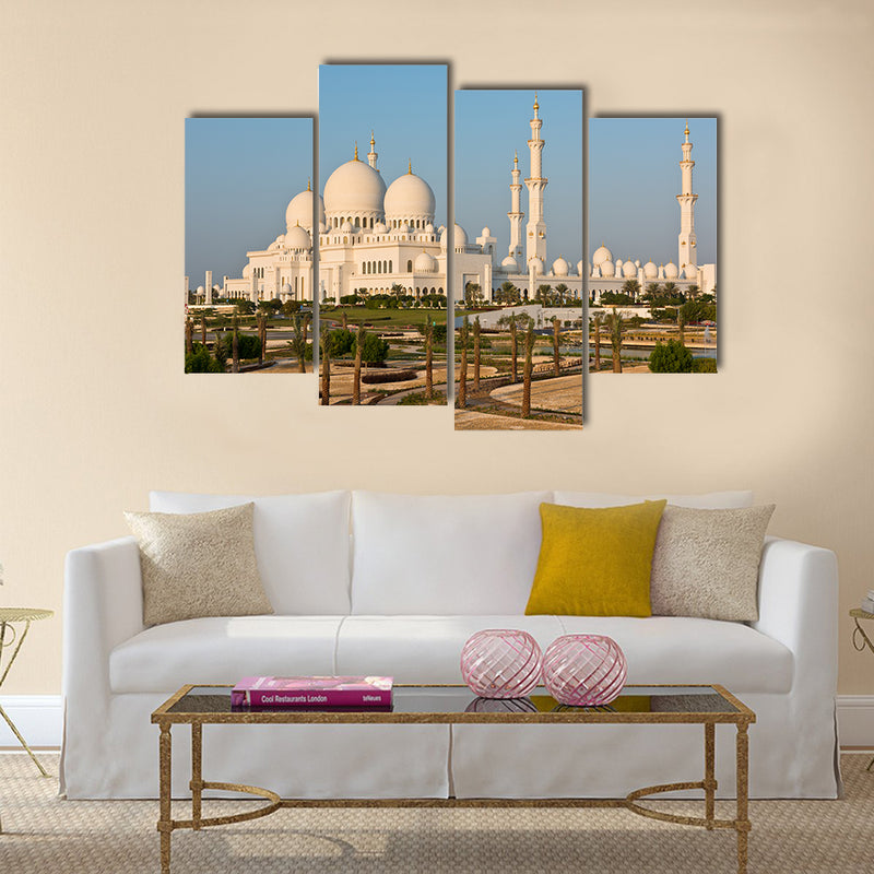 This is the beauty of the Sheikh Zayed White Mosque in Abu Dhabi, UAE multi panel canvas wall art The Sheikh Zayed White Mosque in Abu Dhabi, UAE canvas wall art are amazing. This cheap and versatile canvas print can be used for home and office décor as well. This cheap canvas print has been designed by the Clarnia store that is a canvas making store.