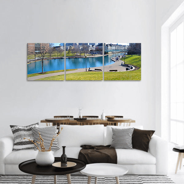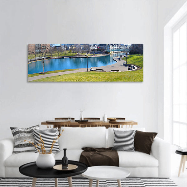 The Indianapolis, Indiana Canal and Skyline During the Day panoramic canvas wall art
