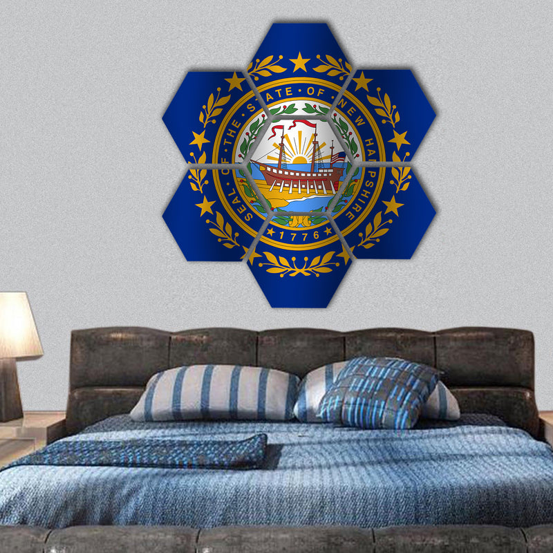 Clarnia is a concept store and your one stop solution for adding class to the interiors. Here you go with the most surreal Waving New Hampshire State Flag hexagonal canvas wall art collection. We specialize in New Hampshire State Flag with perfect animation of designs and colors with bold strokes and hues. Every tint is going to melt your heart. Our paneled wall art collection is here to get you bundle of compliments.