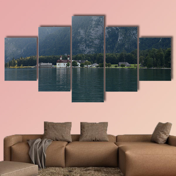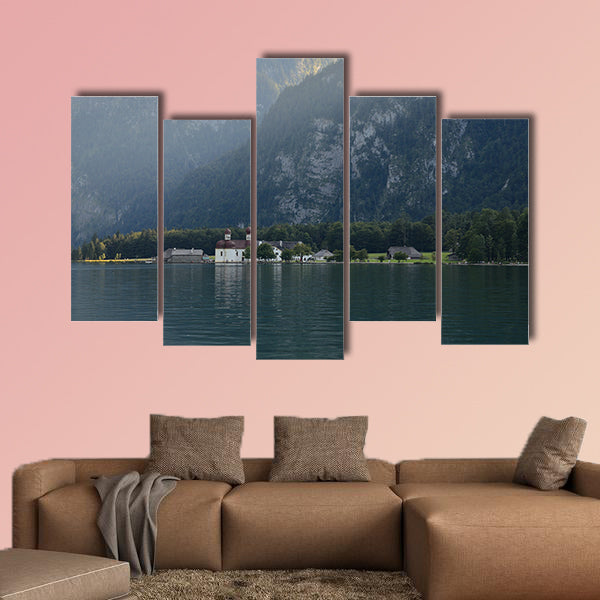 As the name of the large canvas print indicates, this is the scenic view of the Berchtesgaden, Schonau am Konigssee, Germany of St. Bartholomews Church. The mountains are covered by the green grass and the sunlight is making the grass more attractive. This cheap and versatile canvas print can be used for home and office décor as well. This cheap canvas print has been designed by the Clarnia store that is a canvas making store.