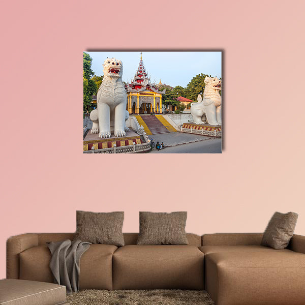 Mandalay, Myanmar, Southern stairway with its magnificent guardian multi panel canvas wall art