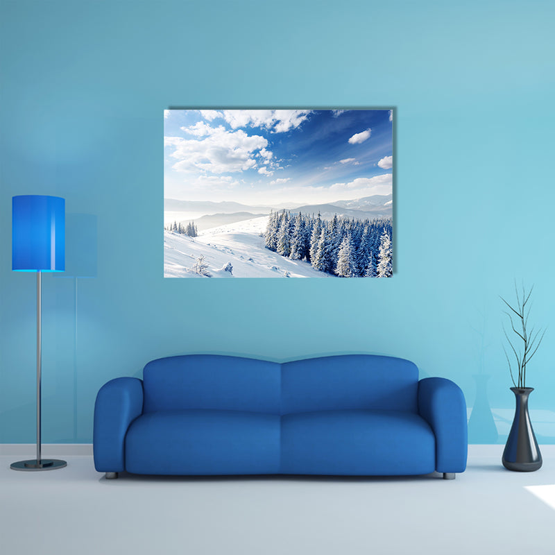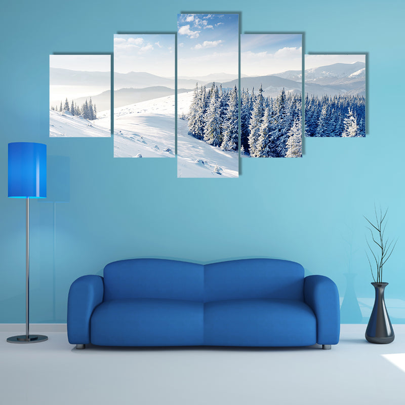 The beautiful mountain landscape in the winter day is visible in this cheap canvas print. The use of this canvas print is best for home and office décor as the trees and landscape in, it can add more beauty to your room. The cheap canvas print is prepared by the clarnia store. As you can see there are trees and mountains that are white and are covered by the snow, A Beautiful Winter Landscape With Snow Covered Trees Multi Panel Canvas Wall Art. The arrival of the snow is also indicating the rainy season.