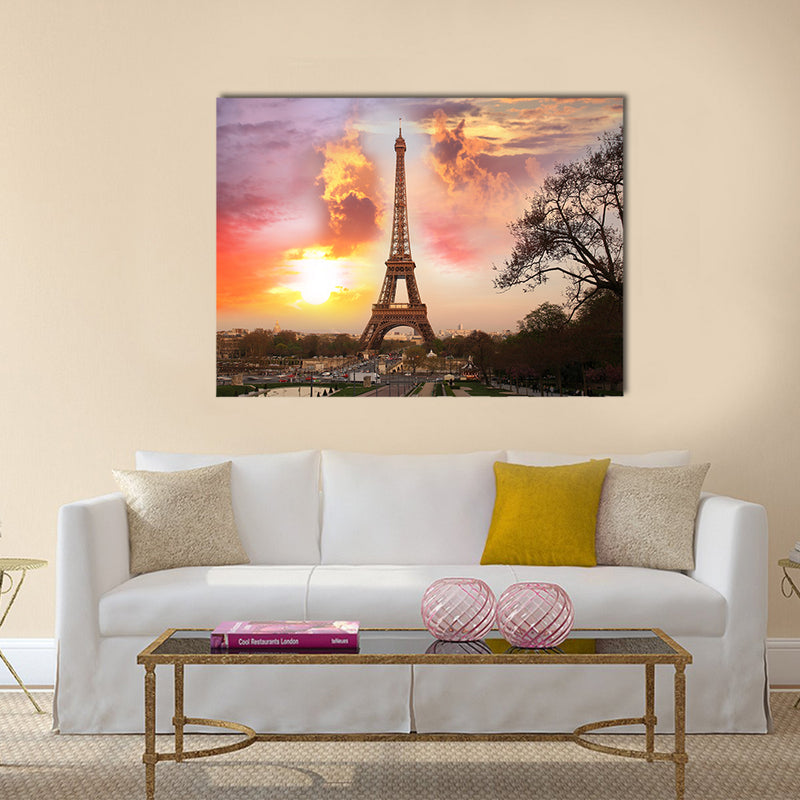 This Eiffel Tower against sunset in Paris, France wall art cheap canvas print is a perfect adorn for the walls of your homes and offices. Clarnia store that is popular in making beautiful canvas prints, Eiffel Tower against sunset in Paris, France Multi panel canvas wall art.You can get this Eiffel tower as large canvas prints and let it explains the concept that holds a due significance.