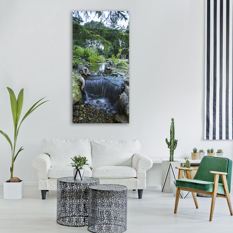 The waterfalls pond fish pond nature, vertical canvas print is a ready to use piece of art for the walls of your homes and offices.This fascinating vertical canvas art can be obtained from the Clarnia store that is popular in making beautiful canvas prints.When it comes to art and interior décor, the only piece of art you desire for is waterfalls pond fish pond nature Vertical Canvas Wall Art, presenting you with elegance and ethereal charisma.This canvas prints not only adds glamor to the wall rather explains the story of strokes and lines of art behind it creation.