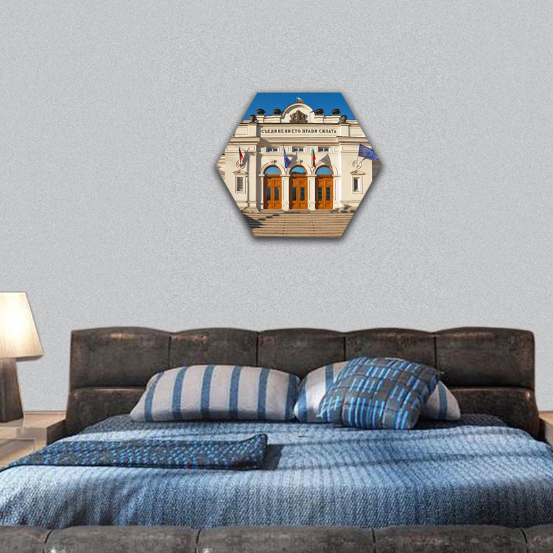 Frontal view of the Bulgarian Parliament, Sofia hexagonal canvas wall art