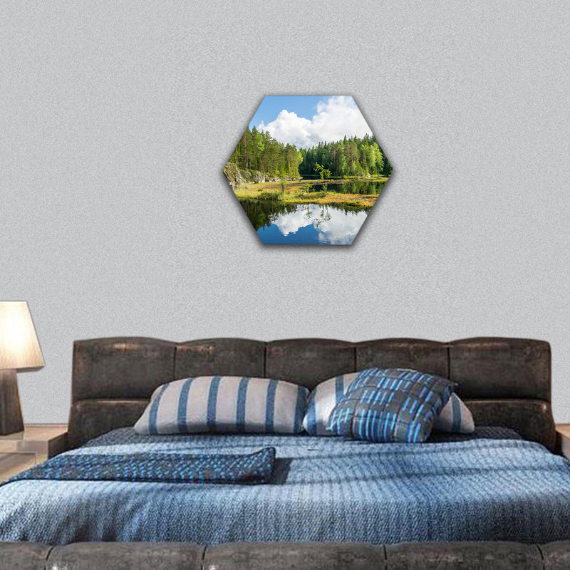 forest pond in Nuuksio National Park in Southern Finland hexagonal canvas wall art