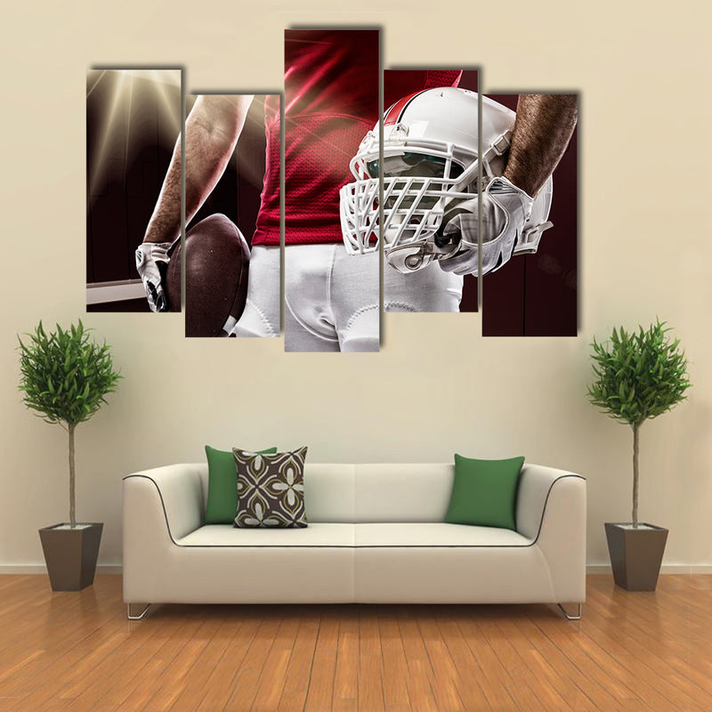 Football Player with a red uniform on a Locker room Multi panel canvas wall art