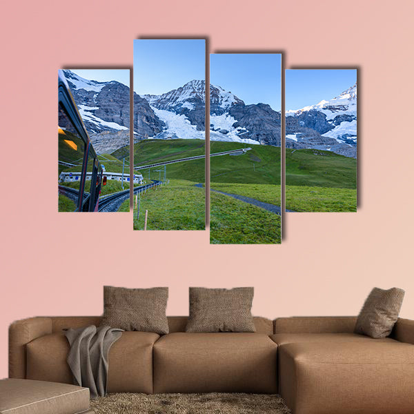 Famous train between Grindelwald and the Jungfraujoch station multi panel canvas wall art
