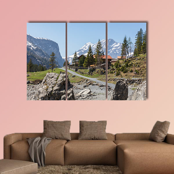 In this large canvas print you can see the beauty of the Panorama view of the Alps on a hiking path near Kandersteg Switzerland. This cheap and versatile canvas print can be used for home and office décor as well. This cheap canvas print has been designed by the Clarnia store that is a canvas making store. The whole view of the path is amazing and wonderful.