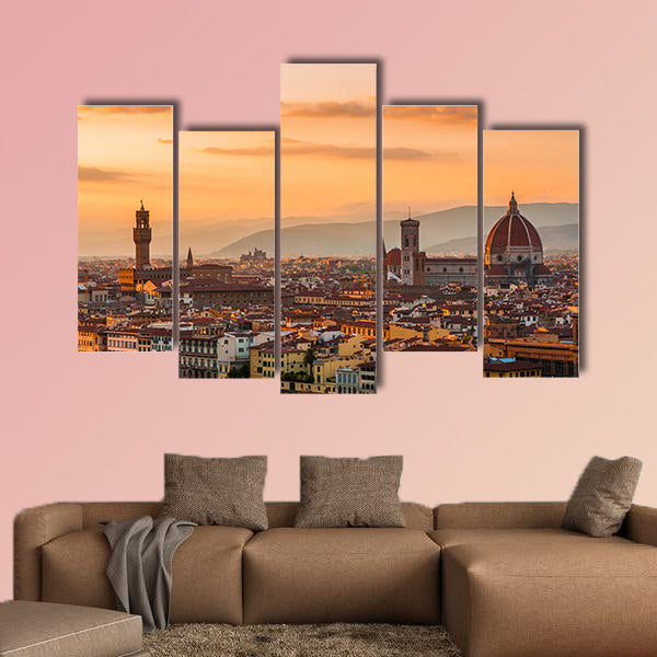 As the name of the large canvas print indicates, this is the scenic view of the golden sunset over Palazzo Vecchio and Cathedral of Santa Maria del Fiore, Duomo in the Florence, Italy. The sky is glorious. This cheap canvas print can be used for home and office décor as well. This cheap canvas print has been designed by the Clarnia store that is a canvas making store.