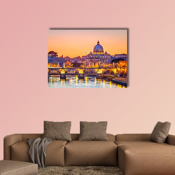 As the name of the large canvas print indicates, this is the scenic view of the Tiber and St Peter. The whole beauty of the canvas lies in the water body that is beside the city. This cheap canvas print can be used for home and office décor as well. This cheap canvas print has been designed by the Clarnia store that is a canvas making store. You can see a wonderful environment in this print.