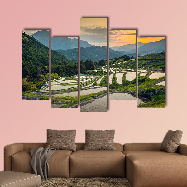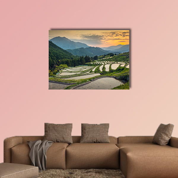Japanese rice terraces at sunset. Maruyama-senmaida, Kumano, canvas wall art