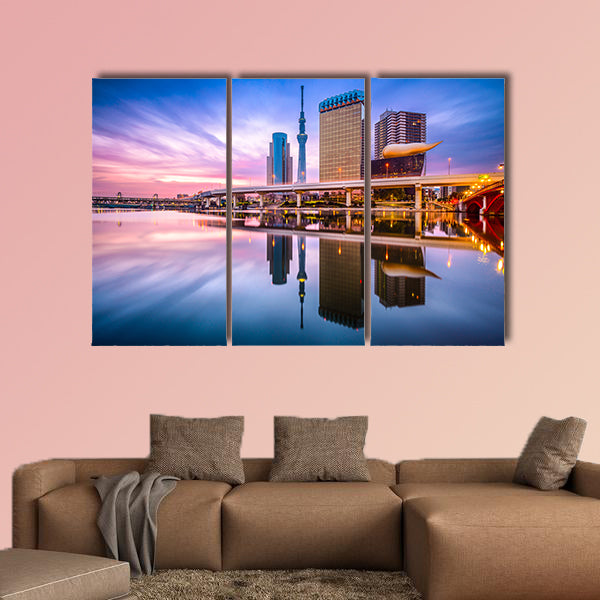 As the name of the large canvas print indicates, this is the scenic view of the Tokyo, Japan skyline on the Sumida River at dawn. The sunset has increased the beauty of the print. The reflection of the buildings in the fresh water of the canal is also visible. This cheap canvas print can be used for home and office décor as well. This cheap canvas print has been designed by the Clarnia store that is a canvas making store.