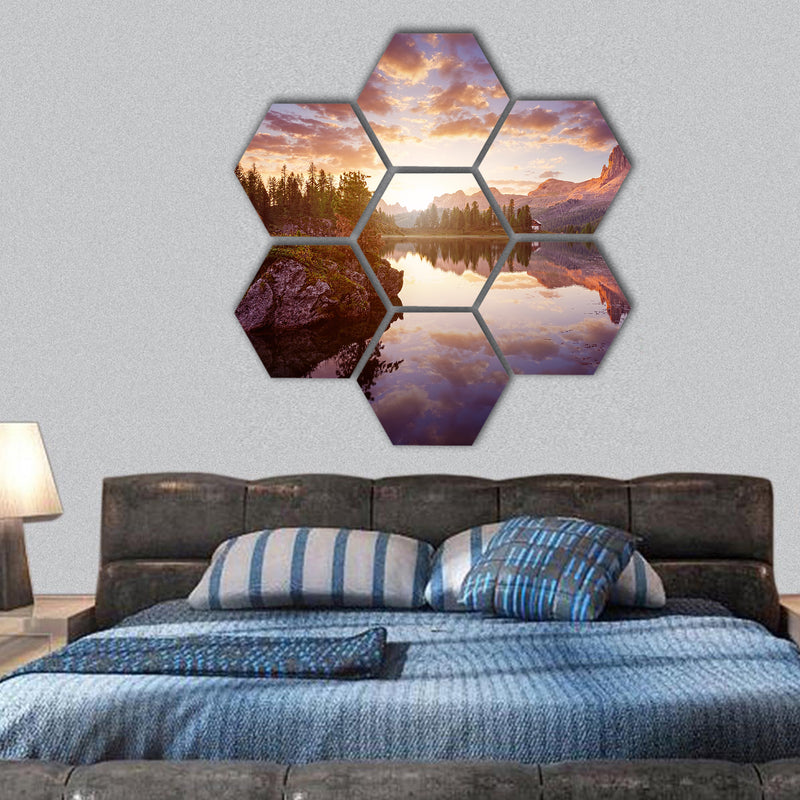 Clarnia is a concept store and your one stop solution for adding class to the interiors. Here you go with the most  surreal Lago Di federa See early in the early  morning   hexagonal canvas wall art collection. We specialize in in Lago Di federa hexagonal Canvas wall art with perfect animations of designs and colors with bold strokes and hues. Every tint is going to melt your heart. Our paneled wall art collection is here to get you bundle of compliments.