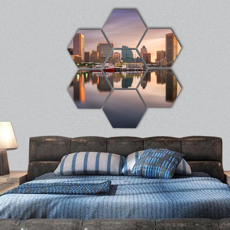 USA skyline at the Inner Harbor hexagonal canvas wall art