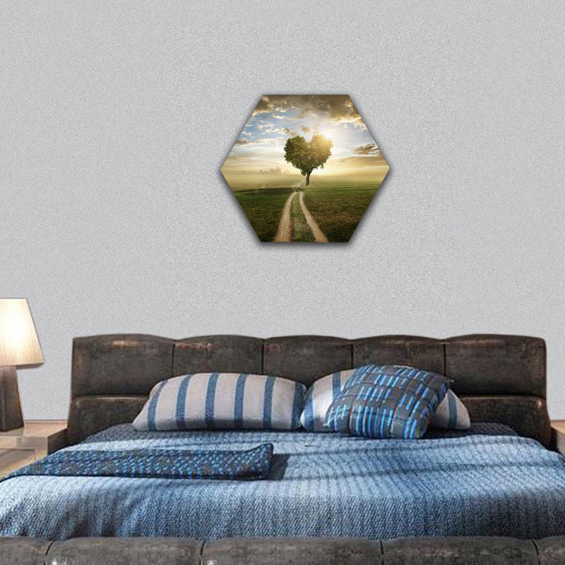 Clarnia is a concept store and your one stop solution for adding class to the interiors. Here you go with the most surreal A tree made in the shape of a heart at sunset hexagonal canvas wall art collection. We specialize A tree shape of a heart hexagonal Canvas wall art with perfect animations of designs and colors with bold strokes and hues. Every tint is going to melt your heart. Our paneled wall art collection is here to get you bundle of compliments.