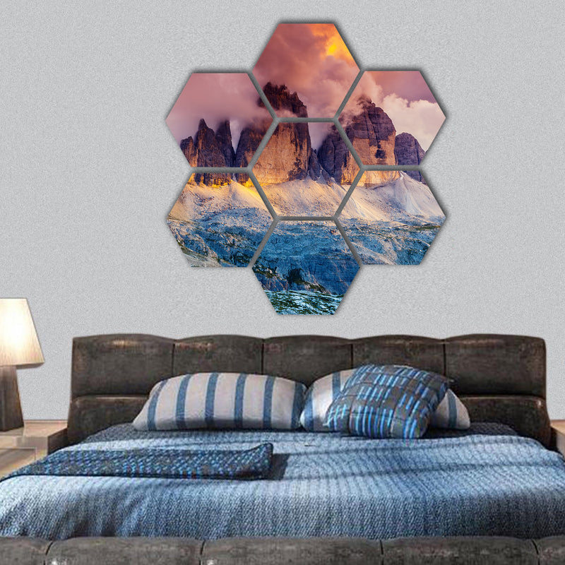 Clarnia is a concept store and your one stop solution for adding class to the interiors. Here you go with the most surreal National Park Tre Cime di Lavaredo with rifugio Locatelli hexagonal canvas wall art collection. We specialize in National Park Tre Cime di Lavaredo hexagonal Canvas wall art with perfect animations of designs and colors with bold strokes and hues. Every tint is going to melt your heart. Our paneled wall art collection is here to get you bundle of compliments.