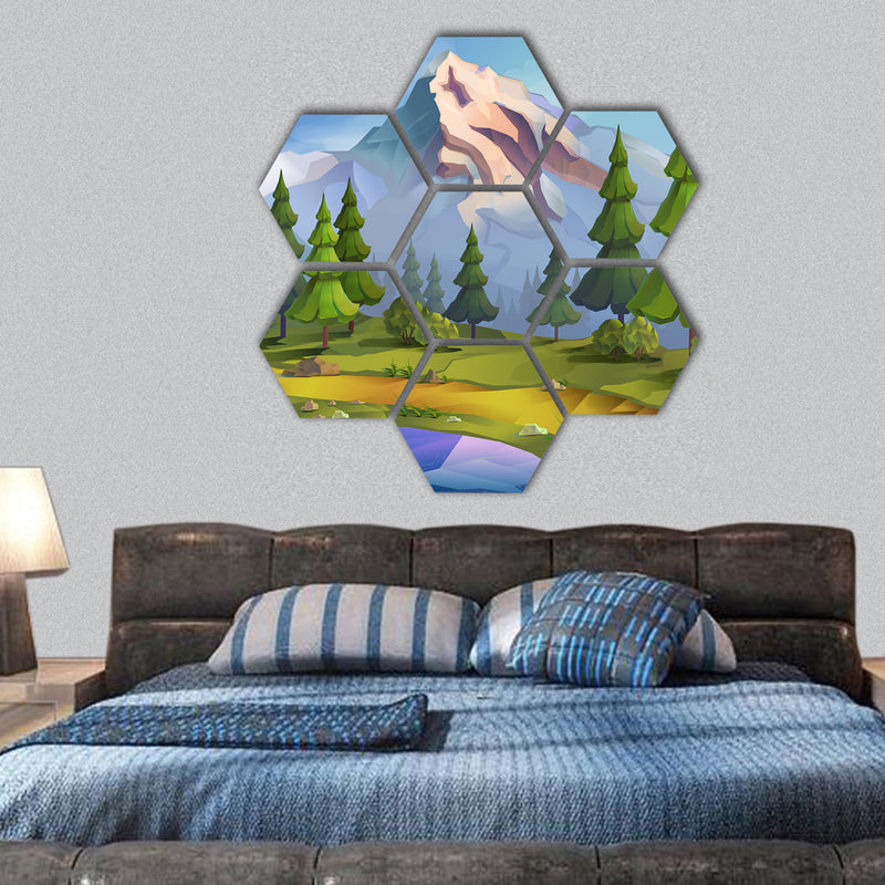 Nature landscape illustration, vector background hexagonal canvas wall art