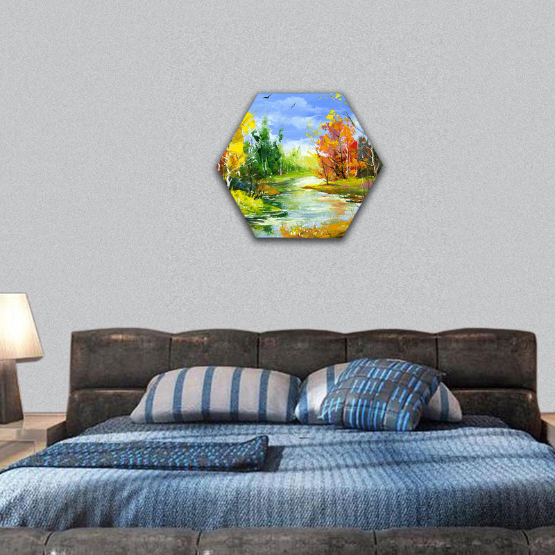 Clarnia is a concept store and your one stop solution for adding class to the interiors. Here you go with the most surreal The autumn landscape executed by oil hexagonal canvas wall art collection. We specialize in autumn landscape hexagonal Canvas wall art with perfect animations of designs and colors with bold strokes and hues. Every tint is going to melt your heart. Our paneled wall art collection is here to get you bundle of compliments.