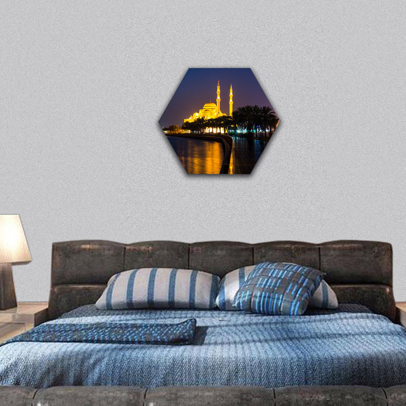 Clarnia is a concept store and your one stop solution for adding class to the interiors. Here you go with the most surreal Al Noor mosque in Sharjah reflected in the lake hexagonal canvas wall art collection. We specialize in Al Noor mosque with perfect animation of designs and colors with bold strokes and hues. Every tint is going to melt your heart. Our paneled wall art collection is here to get you bundle of compliments.