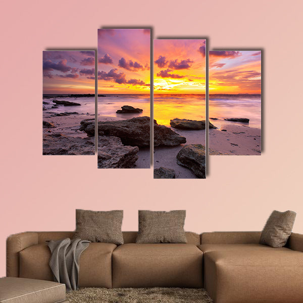 This large and cheap canvas print is portraying the beautiful view of tropical beach. The backdrop of this print is giving the gorgeous view of beach sunset. In this print you can see the beautiful view of small mountains on the shore of the beach. You can easily get this canvas wall art print from clarnia store.