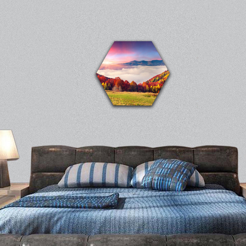 Autumn morning in the Carpathian mountains, Europe hexagonal canvas wall art