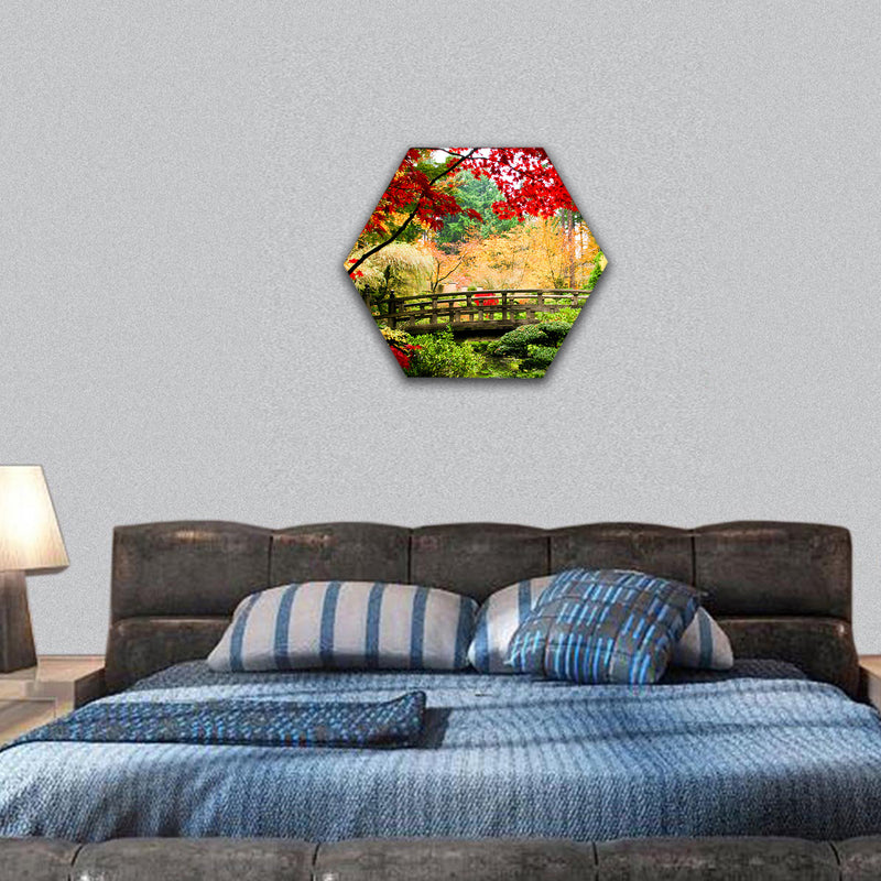 Clarnia is a concept store and your one stop solution for adding class to the interiors. Here you go with the most surreal Bridge in an Asian garden during Fall season hexagonal canvas wall art collection. We specialize Bridge with perfect animation of designs and colors with bold strokes and hues. Every tint is going to melt your heart. Our paneled wall art collection is here to get you bundle of compliments.