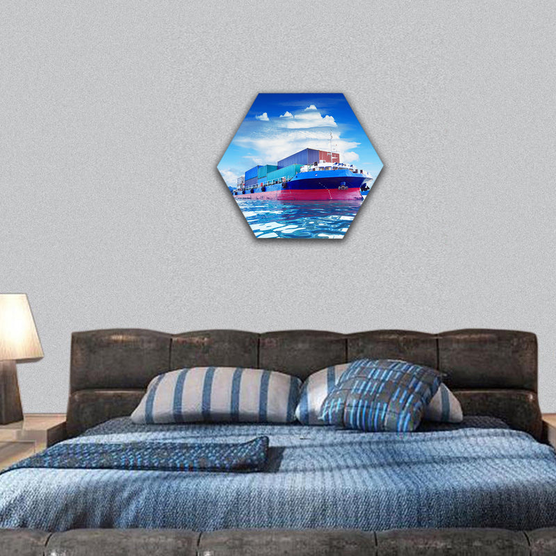 Clarnia is a concept store and your one stop solution for adding class to the interiors. Here you go with the most surreal Container ship in naval transportation hexagonal canvas wall art collection. We specialize Container ship with perfect animation of designs and colors with bold strokes and hues. Every tint is going to melt your heart. Our paneled wall art collection is here to get you bundle of compliments.