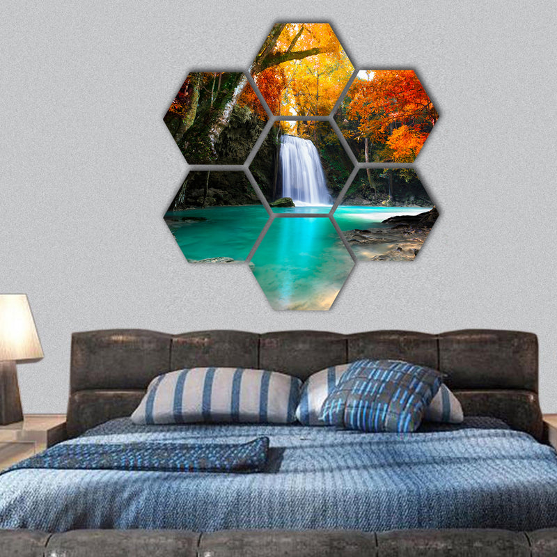 Clarnia is a concept store and your one stop solution for adding class to the interiors. Here you go with the most surreal Deep forest Waterfall hexagonal canvas wall art collection. We specialize Deep forest hexagonal  canvas wall art with perfect animations of designs and colors with bold strokes and hues. Every tint is going to melt your heart. Our paneled wall art collection is here to get you bundle of compliments.