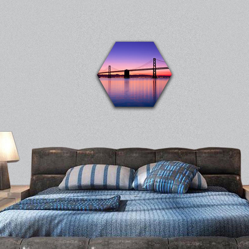 Clarnia is a concept store and your one stop solution for adding class to the interiors. Here you go with the most surreal Bay Bridge in San Francisco silhouetted hexagonal canvas wall art collection. We specialize in Bay Bridge in San Francisco with perfect animation of designs and colors with bold strokes and hues. Every tint is going to melt your heart. Our paneled wall art collection is here to get you bundle of compliments.