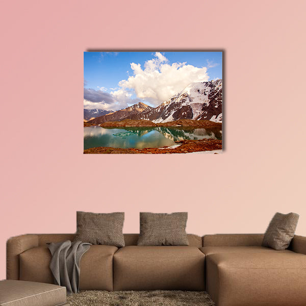 In this large canvas print you can see the elegance of the beautiful Mountain Lake with reflection of nearest mountains. The water in the lake is fluffy white and its sparkling beauty is beyond the description of the words. The brown colored mountains, the green water in the lake and the white snowy surroundings all are making it a worth appreciating cheap canvas print that can be obtained from the clarnia store.