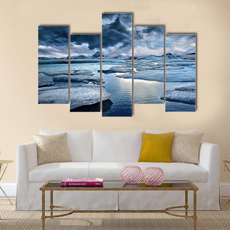 As the name of the large canvas print indicates, this is the scenic view of the Icebergs at Jokulsarlon Glacial Lagoon in Iceland multi panel canvas wall art The beauty of the print lies in the tall mountains, clear weather and cool breeze. The whole atmosphere is bizarre and fantastic. This cheap canvas print has been designed by the Clarnia store that is a canvas making store. This cheap canvas print can be used for home and office décor as well.